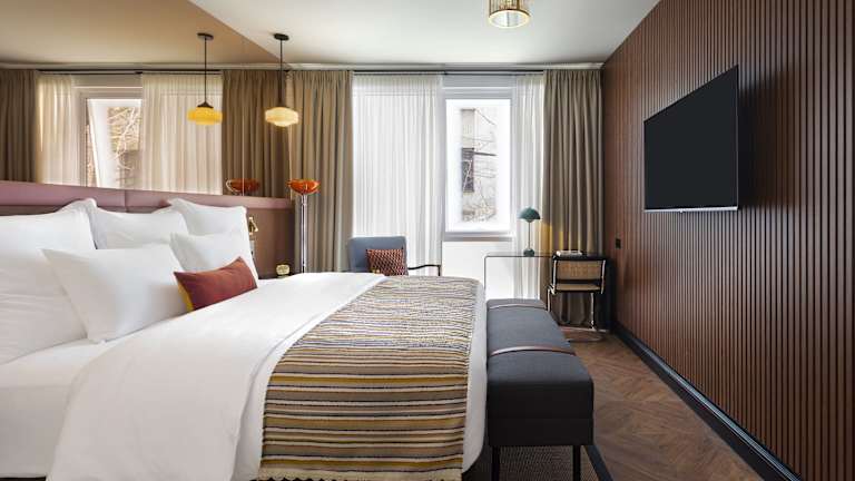 Die klimatisierten Zimmer sind mit einem Schreibtisch, einem Wasserkocher, einem Kühlschrank, einer Minibar, einem Safe, einem Flachbild-TV sowie einem eigenen Badezimmer mit Dusche ausgestattet. Bettwäsche und Handtücher werden bereitgestellt, und es sind schallisolierte Zimmer verfügbar.