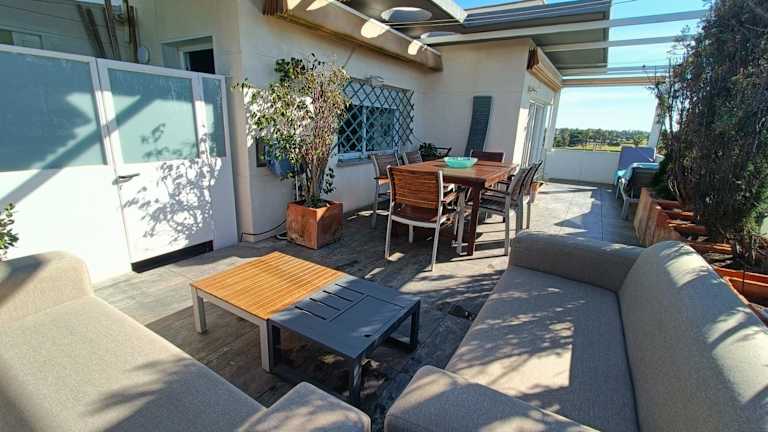 Die Ferienwohnung ist klimatisiert und besteht aus 3 Schlafzimmern und einem Wohnzimmer. Sie bietet eine voll ausgestattete Küche mit Kühlschrank und Kaffeemaschine sowie 3 Badezimmer, die mit Bidet und Dusche ausgestattet sind. Handtücher und Bettwäsche werden bereitgestellt.