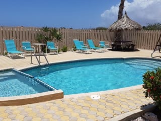 Die Aruba Beach Villas bieten den perfekten Rückzugsort für einen entspannten Urlaub am Palm Beach. Genießen Sie die atemberaubende Aussicht auf das Karibische Meer, die voll ausgestatteten Villen und Studios sowie die Nähe zu Restaurants, Bars und Einkaufsmöglichkeiten. Mit Aktivitäten wie Schnorcheln, Windsurfen und Tauchen in unmittelbarer Nähe ist für Abwechslung gesorgt. Erkunden Sie auch das Vogelschutzgebiet Bubali und den internationalen Flughafen Reina Beatrix, die beide in kurzer Entfernung liegen.