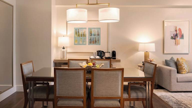 Die Zimmer sind klimatisiert und verfügen über eine gut ausgestattete Küche sowie großzügige Wohn- und Essbereiche. Die Ausstattung umfasst zudem einen Flachbild-Kabel-TV, einen elektronischen Safe und ein eigenes Badezimmer mit Pflegeprodukten, einer Warmwasserdusche und Haartrockner. In den Zimmern stehen verschiedene Bettoptionen zur Verfügung, einschließlich Doppelbetten, Queensize- und Kingsize-Betten. Zustellbetten können auf Anfrage bereitgestellt werden. Darüber hinaus sind eine Waschmaschine, ein Wäschetrockner sowie eine Tee-/Kaffeemaschine vorhanden.