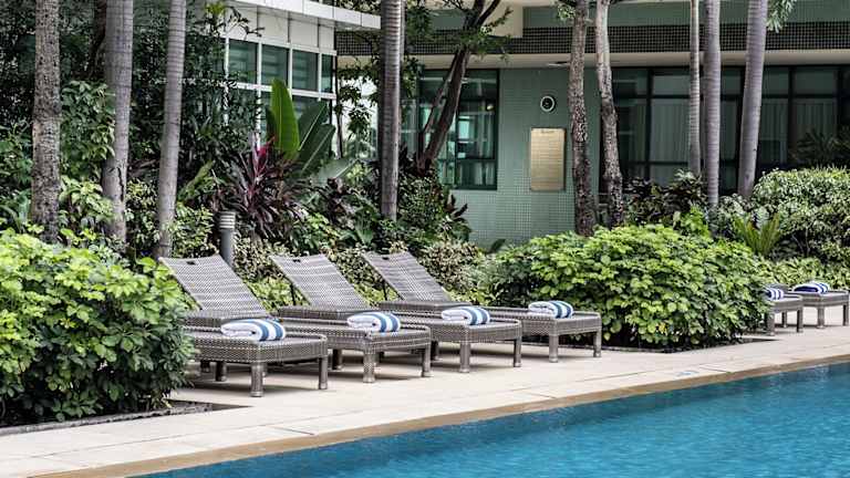 Das Hotel liegt im Rockwell Center in Makati City, einer exklusiven und gut gesicherten Gegend. Die Entfernungen zu wichtigen Punkten sind kurz: etwa 4 Meter zum Flughafen, 2 Minuten zum Stadtzentrum, 2 Minuten zum Golfplatz und 2 Minuten zum Bahnhof. Das Einkaufszentrum Power Plant Mall, das zahlreiche Freizeit- und Speisemöglichkeiten bietet, ist nur 450 Meter entfernt. Der internationale Flughafen Ninoy Aquino ist in einer 20-minütigen Autofahrt erreichbar.