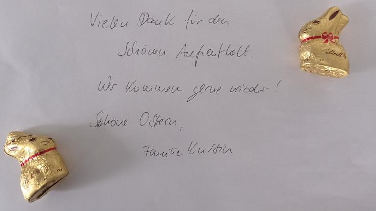 Essen kann durch einen Lieferservice in die Unterkunft bestellt werden. In der voll ausgestatteten Küche der Ferienwohnung steht eine Essgelegenheit zur Verfügung.