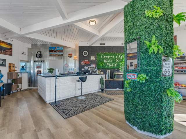 Die Zimmer im Canyon's Edge Route 66 Motel sind komfortabel und modern eingerichtet. Jedes Zimmer verfügt über einen Flachbild-Smart-TV und ein eigenes Badezimmer. Kostenloses WLAN ist ebenfalls vorhanden. Die Rezeption ist von 06:00 bis 23:00 Uhr geöffnet und steht Ihnen für Fragen und Anliegen zur Verfügung.