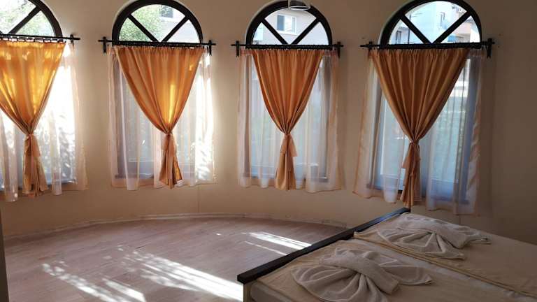 Das Ashram Hotel befindet sich in Primorsko, etwa 700 m vom Strand Primorsko entfernt. Die Unterkunft liegt 100 m vom Nordstrand entfernt und ist 41 km vom Poda Birdwatching Spot sowie 24 km vom Amphitheatre Apoloniya entfernt. Der Flughafen Burgas ist 60 km von der Unterkunft entfernt.