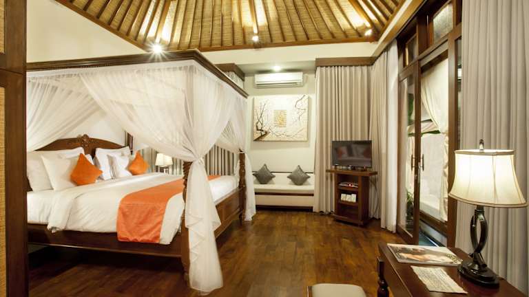 Die Zimmer im Astagina Resort Villa and Spa sind elegant eingerichtet und verfügen über Holzböden. Sie sind voll klimatisiert und mit einem Safe, einem Wasserkocher und einem Flachbild-Sat-TV ausgestattet. Zur weiteren Ausstattung gehören eine gekühlte Minibar, Hausschuhe und Handtücher. Jedes Zimmer verfügt über ein eigenes Bad mit kostenfreien Pflegeprodukten.