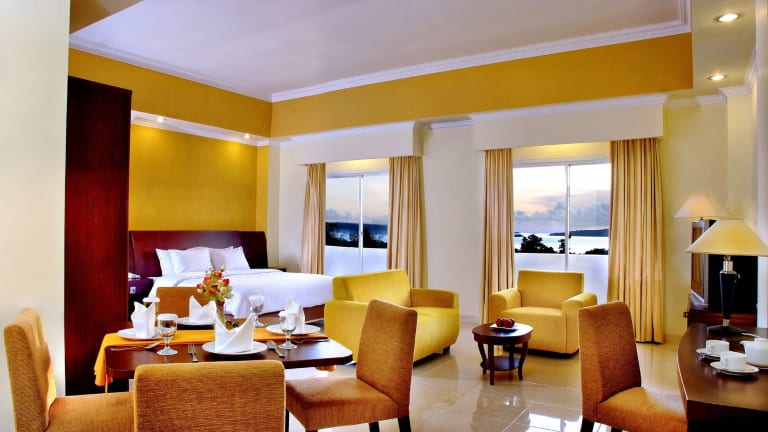 Das ASTON Niu Manokwari Hotel & Conference Center bietet geräumige und komfortable Zimmer mit eigenem Balkon und herrlicher Aussicht. Die klimatisierten Zimmer verfügen über ein eigenes Badezimmer mit Badewanne und Hausschuhen. Zur Ausstattung gehören auch eine Minibar, ein Flachbild-Kabel-TV und ein Essbereich. WLAN ist gegen Aufpreis verfügbar.