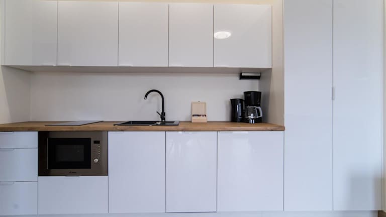 Die Apartments verfügen über eine voll ausgestattete Küchenzeile, die eine Kaffeemaschine und einen Kühlschrank umfasst. Zudem steht den Gästen ein Grill zur Verfügung, um im Freien zu speisen.
