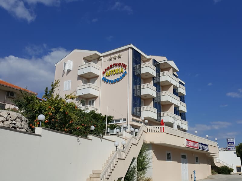 Aparthotel Astoria is situated in the village of Seget Vranjica nearby Trogir. The object is located 7 km away from the Airport Split, and 30 km from the city of Split itself. It is 10 minutes away from the highway exit in Prgomet. The object is open for visitors throughout the year and has a parking lot for 30 vehicles. The beach is 300 m away. The object includes: a la carte restaurant with the offer of local and international dishes, 6 quality equipped suites (2+2 beds) and 6 quality equipped rooms.