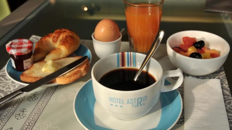 Das Frühstück ( kaltes Buffet ) wird von 07h15 bis 10h00 im Speisesaal serviert. Sie köennen es auch ins Zimmer bestellen ( Service von 07h30 bis 10h00 ) Falls Sie früher frühstücken möchten kann Ihnen unser Nachtportier auch eins vor 07h15 herrichten!