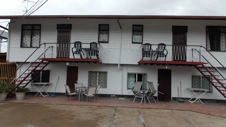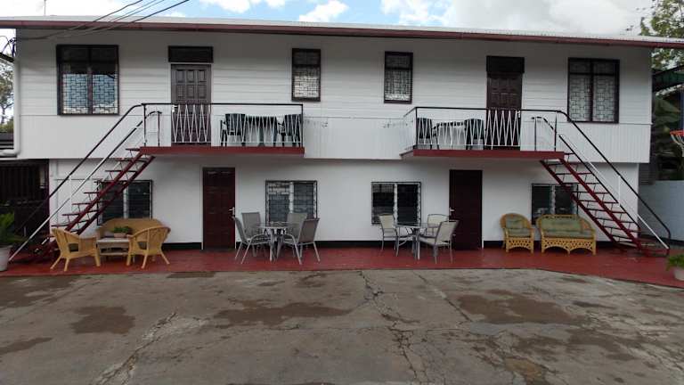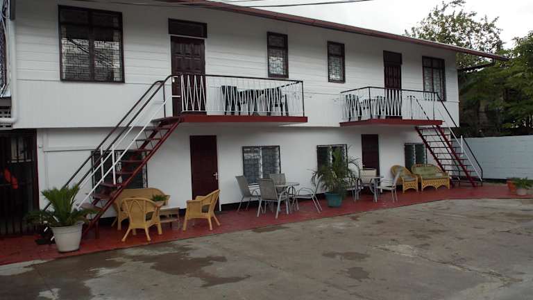 Das Hotel At Rachel in Paramaribo bietet Ihnen eine komfortable Unterkunft mit allen Annehmlichkeiten, die Sie für einen angenehmen Aufenthalt benötigen. Genießen Sie den Außenpool und den Garten sowie die gut ausgestatteten Zimmer mit kostenfreiem WLAN und Flachbild-TV. Die Küche in jedem Zimmer ermöglicht es Ihnen, Ihre eigenen Mahlzeiten zuzubereiten, und Grillmöglichkeiten stehen Ihnen ebenfalls zur Verfügung. Die zentrale Lage des Hotels ermöglicht es Ihnen, die Sehenswürdigkeiten von Paramaribo bequem zu erkunden.