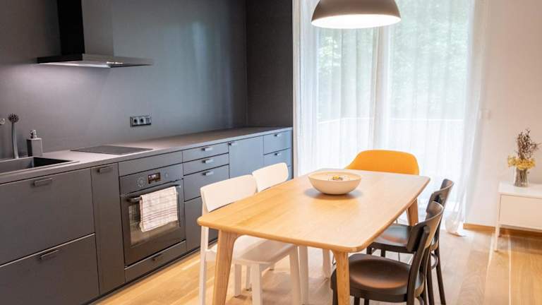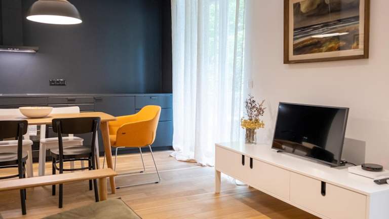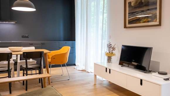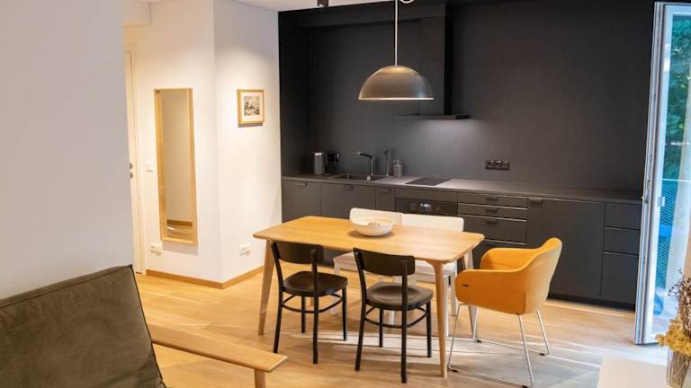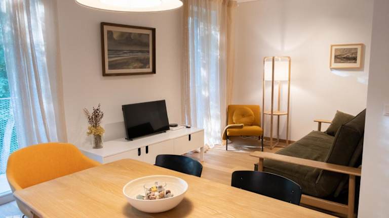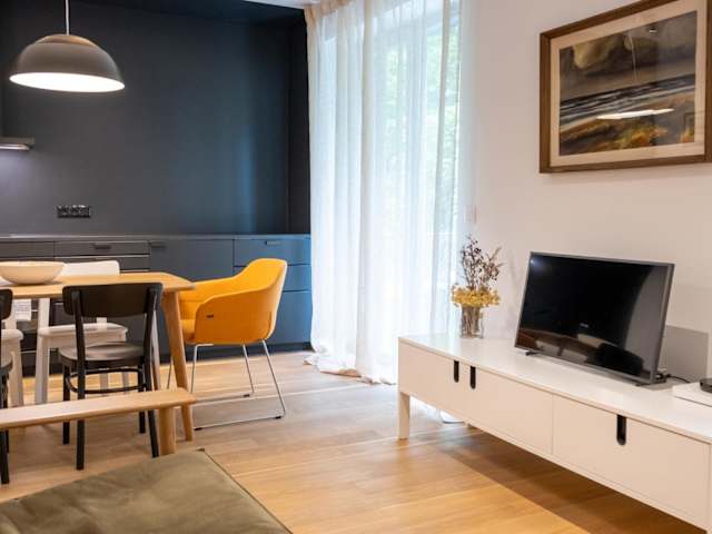 Die Ferienwohnung verfügt über ein Schlafzimmer, ein Wohnzimmer, eine voll ausgestattete Küche mit Kühlschrank und Wasserkocher sowie ein Badezimmer mit Dusche. Handtücher und Bettwäsche werden bereitgestellt. Die Unterkunft ist klimatisiert und bietet Nichtraucherzimmer.