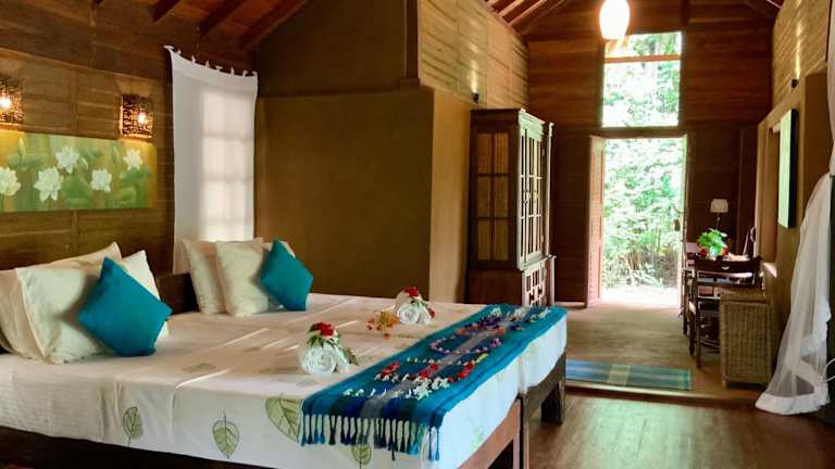 Das Athreya Ayurveda Ashram in Habarana ist ein idyllisches Resort, das sich ideal für einen erholsamen Urlaub eignet. Mit einem Außenpool, einem Garten und einer Terrasse bietet das Resort zahlreiche Möglichkeiten, um die Natur und die Ruhe der Umgebung zu genießen. Das Restaurant verwöhnt die Gäste mit köstlichen Mahlzeiten, während der kostenfreie WLAN-Zugang eine gute Konnektivität gewährleistet. Die Zimmer sind komfortabel eingerichtet und bieten einen herrlichen Blick auf den See. Darüber hinaus können die Gäste den Hamam, Karaoke-Abende und die Gemeinschaftsküche nutzen. Das Resort ist ein idealer Ausgangspunkt für Aktivitäten wie Radfahren und bietet auch Fahrradverleih und Autovermietung an. Das freundliche Personal an der Rezeption steht Ihnen jederzeit zur Verfügung und hilft Ihnen gerne bei allen Anliegen.