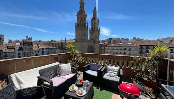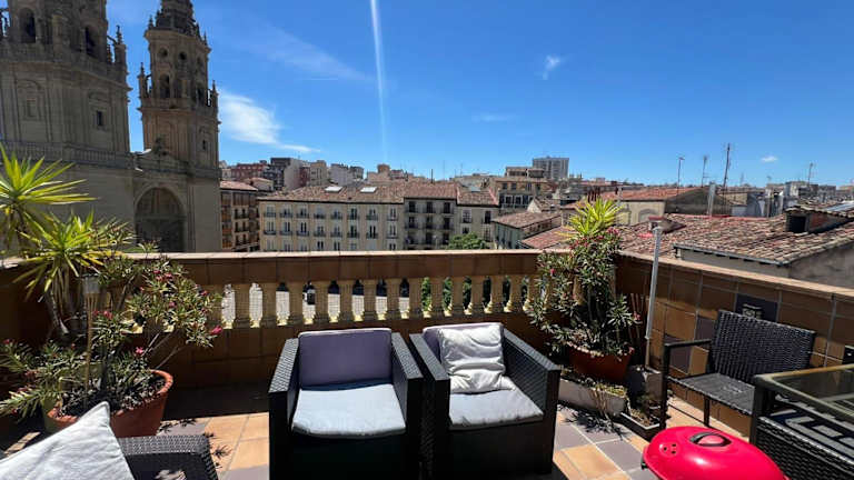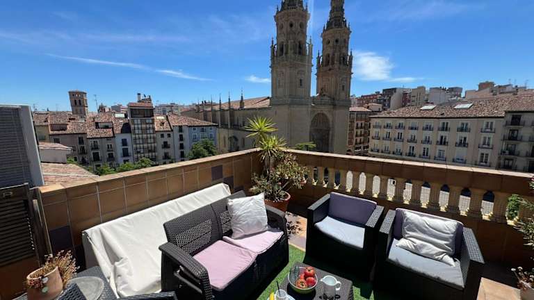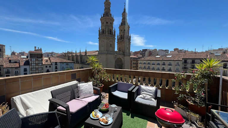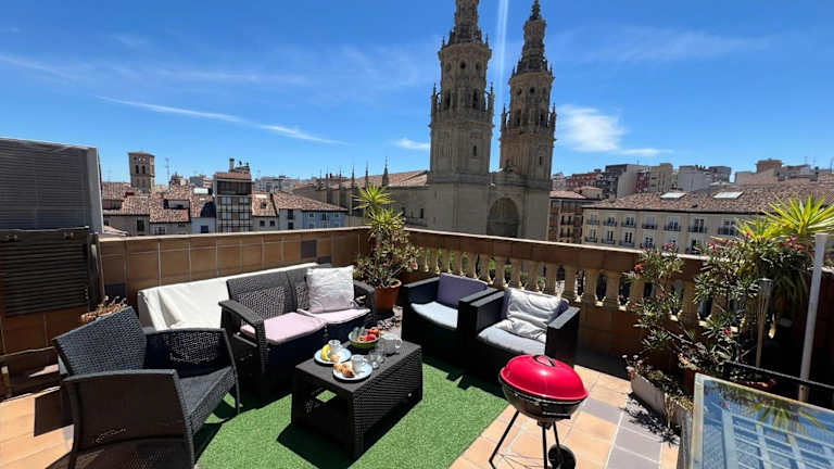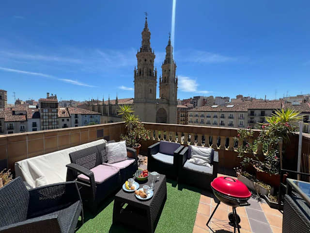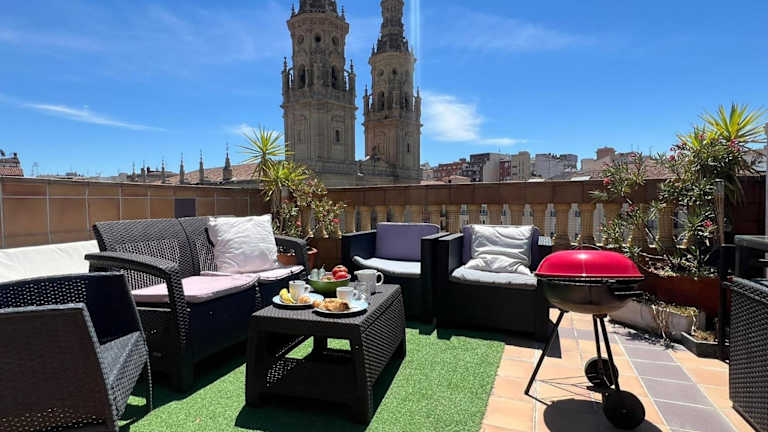 ATICO Catedral Barbacoa y Aire sin ascensor By Apartamentos Logrono bietet eine komfortable Ferienwohnung mit zwei Schlafzimmern und einem Badezimmer. Die Ausstattung umfasst kostenloses WLAN, Klimaanlage, einen Kühlschrank und eine Kaffeemaschine. Zudem stehen Grillmöglichkeiten und eine Terrasse mit Stadtblick zur Verfügung. Die Unterkunft ist privat geführt und das Mindestalter für den Check-in beträgt 20 Jahre.