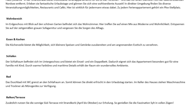 Atlantik - Strandstr 17, App 17 bietet moderne Übernachtungsmöglichkeiten mit kostenlosem WLAN und einer Terrasse. Die Unterkunft ist in Nichtraucherformat gehalten und verfügt über einen kostenlosen Privatparkplatz. Die Mindestanforderungen für den Check-in und Gästen sind zu beachten.