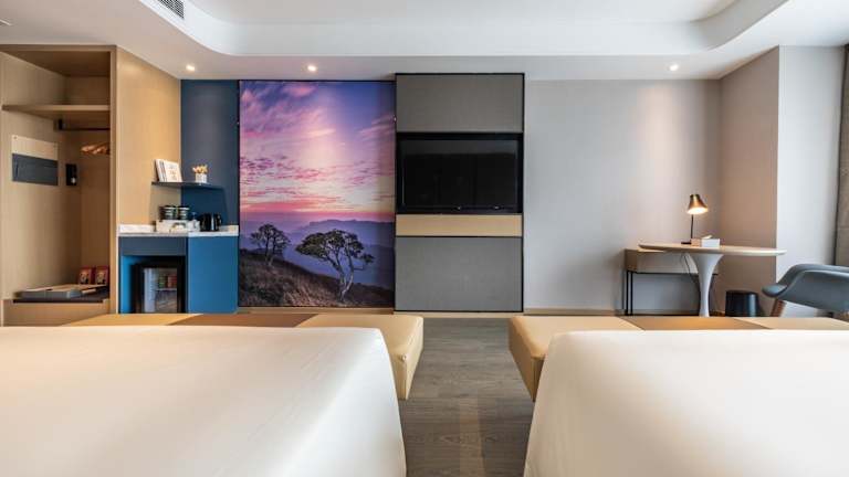 Die Zimmer im Atour Hotel Shunde Midea Yueran Plaza Foshan sind mit einem Sitzbereich und einem Flachbild-TV ausgestattet. Jedes Zimmer verfügt über ein eigenes Badezimmer mit kostenlosen Pflegeprodukten, einem Haartrockner und einer Dusche. Zur weiteren Ausstattung gehören eine Klimaanlage und ein Schreibtisch.