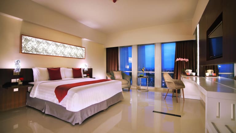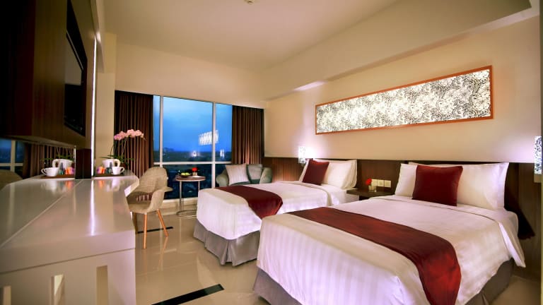 Die Zimmer im Atria Hotel Malang sind modern und komfortabel eingerichtet. Sie sind klimatisiert und verfügen über einen Flachbild-Sat-TV, einen Schreibtisch mit Sitzecke, eine Minibar und einen Wasserkocher. Das eigene Bad ist mit einer Dusche und kostenfreien Pflegeprodukten ausgestattet. Kostenloses WLAN ist im gesamten Hotel verfügbar.