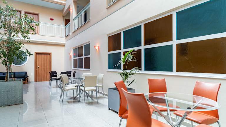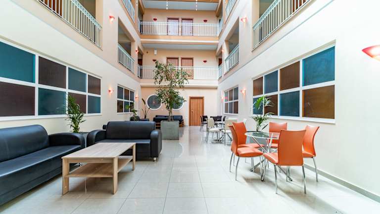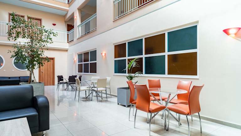 Das Atrium Hotel verfügt über einen Außenpool, der den Gästen die Möglichkeit bietet, sich an warmen Tagen zu erfrischen und zu entspannen. Darüber hinaus bietet die Gemeinschaftslounge einen gemütlichen Ort zum Verweilen und Entspannen.
