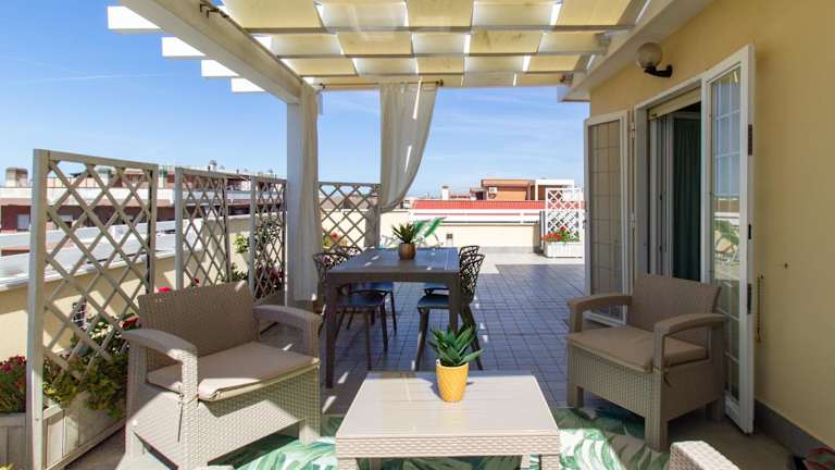 Attico Centralissimo Vista Mare bietet klimatisierte Übernachtungsmöglichkeiten mit Balkon und kostenlosem WLAN. Die Unterkunft zeichnet sich durch einen beeindruckenden Meer- und Bergblick aus und verfügt über eine Terrasse mit Stadtblick. Der Flughafen Rom-Ciampino liegt 28 km entfernt, und es wird ein kostenpflichtiger Flughafentransfer angeboten.