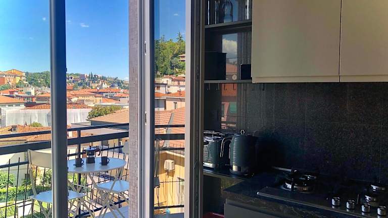Die Unterkunft Attico Spazio alla luce liegt in der Nähe von bedeutenden Attraktionen wie Sant'Anastasia, Kirche San Zeno und Piazzale Castel San Pietro. Der Flughafen Verona ist 15 km entfernt.