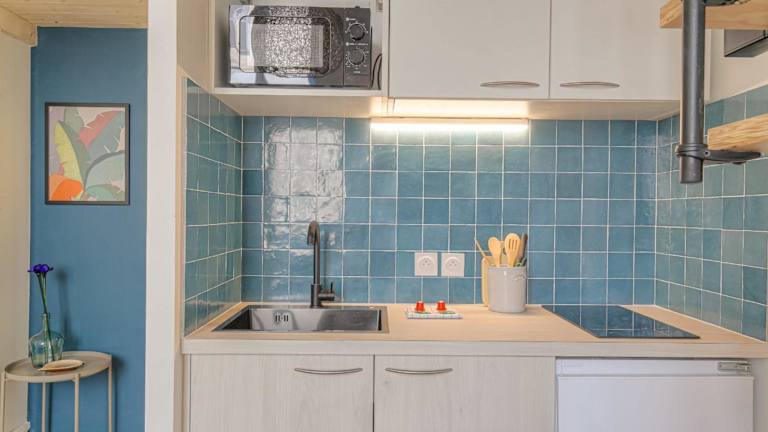 Die Ferienwohnung verfügt über 1 Schlafzimmer, eine Küche mit Kühlschrank und Mikrowelle sowie ein Badezimmer mit Dusche und kostenlosen Pflegeprodukten. Handtücher und Bettwäsche werden bereitgestellt.