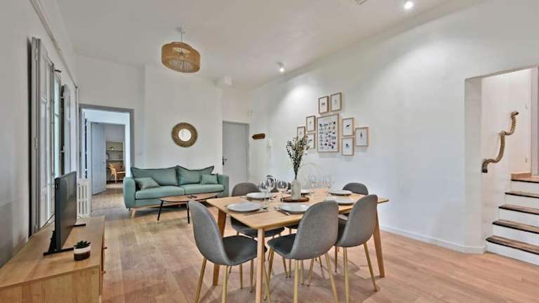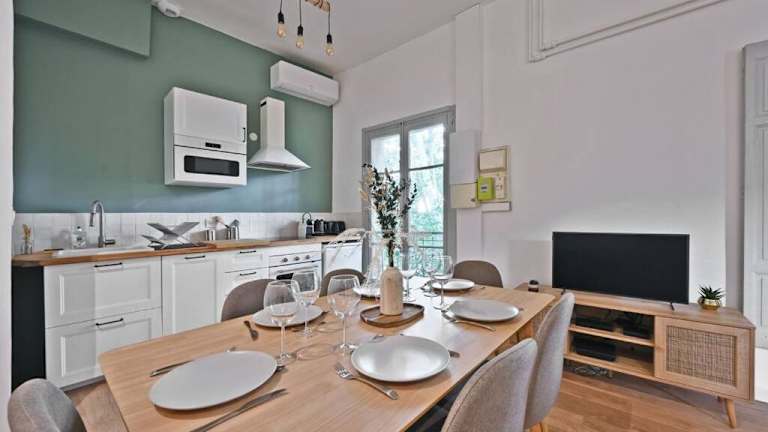 Au coeur des Platanes bietet kostenloses WLAN und eine Klimaanlage. Zu den Annehmlichkeiten zählen ein Balkon mit Stadtblick, eine Terrasse sowie ein kostenloser Privatparkplatz.