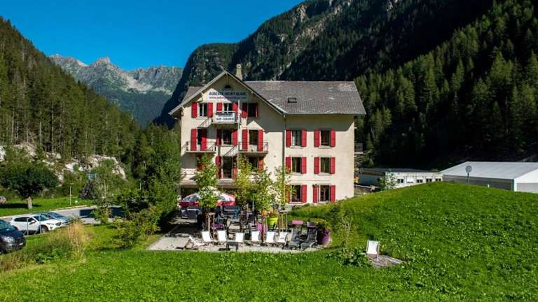 Das Auberge du Mont Blanc in Trient bietet eine traditionelle Schweizer Unterkunft mit gemütlichen Schlafsälen und komfortablen Doppelzimmern. Genießen Sie die köstliche Schweizer Küche im hoteleigenen Restaurant und entspannen Sie in der Sauna oder auf der Terrasse. Die Lage des Hotels ist ideal für Wanderungen im Sommer und Skifahren im Winter. Ein Shuttleservice kann gegen Aufpreis arrangiert werden und die Bushaltestelle befindet sich in unmittelbarer Nähe.