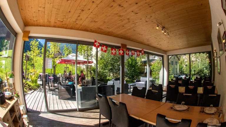 Das hoteleigene Restaurant des Auberge du Mont Blanc serviert traditionelle Schweizer Küche, darunter beliebte Gerichte wie Fondue. Auf Anfrage werden auch Gerichte für spezielle Ernährungsbedürfnisse angeboten. Genießen Sie eine köstliche Mahlzeit in gemütlicher Atmosphäre.