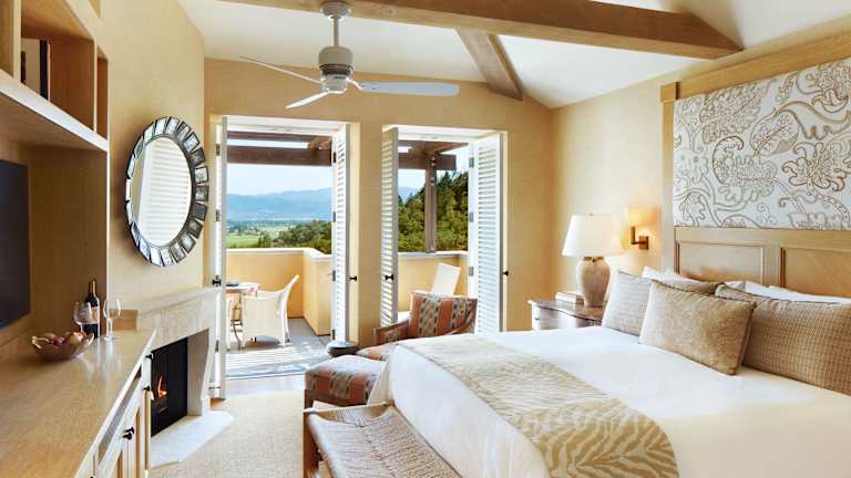 Die Unterkünfte im Hotel Auberge du Soleil, An Auberge Resort, sind mit viel Liebe zum Detail gestaltet und bieten eine charmante Provence-Atmosphäre. Jedes Zimmer verfügt über einen Kamin, kostenfreies WLAN und einen Balkon oder eine Terrasse mit weitem Blick auf die Umgebung. Die Zimmer sind mit italienischer Bettwäsche, flauschigen Hausschuhen und Bademänteln ausgestattet. Die Badezimmer bieten eine übergroße Badewanne, eine separate ebenerdige Dusche, ein Doppelwaschbecken und kostenfreie Wellness-Pflegeprodukte. Einige Suiten verfügen über ein separates Wohnzimmer und einen zusätzlichen LED-TV.