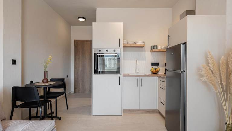 Die Ferienwohnung umfasst 1 Schlafzimmer, ein Wohnzimmer sowie eine voll ausgestattete Küche mit Kühlschrank und Kaffeemaschine. Des Weiteren gibt es 1 Badezimmer mit Dusche und kostenlosen Pflegeprodukten. Handtücher und Bettwäsche sind ebenfalls vorhanden.