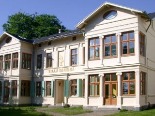 Villa Saphira Direkt an der Strandpromenade im Villenressort Delbrückstraße, nur wenige Schritte vom Strandaufgang entfernt, liegt die denkmalgeschützte Villa Saphira im Stil der Bäderarchitektur. Die Wohnungen haben 2 oder 3 Zimmer und sind in frischen Farben gehalten; Wintergärten und Veranden lassen viel Sonnenlicht herein. Zwei der Wohnungen verfügen sogar über 3 Schlafzimmer und sind besonders geeignet für Familien oder mehrere Paare, die sich ein Appartement teilen möchten, Stichwort "Family & Friends". Luftige Vorhänge, glitzernde Kronleuchter, Spiegel, weiße Möbel im Strandhaus-Ambiente, warmes Holz, schwarz-weiß geflieste Bäder verleihen allem einen Hauch von Luxus. Villa Idyll Die Villa liegt etwas zurückgesetzt vom Trubel der Promenade, den Strand fast vor der Tür haben Sie trotzdem. Den beiden großzügigen Wohnungen geben weinrote Wände, sonnendurchflutete Fensterfronten, Veranden oder Balkone mit Teakholz-Möbeln ein ganz besonderes Flair, glitzernde Kronleuchter, champagnerfarbene Vorhänge, Spiegel, kolonial anmutende Ledersessel, warme Holzböden, schwarz-weiß geflieste Bäder verleihen allem einen Hauch von Luxus. Beide Wohnungen haben zwei separate Schlafzimmer. Villa am Kulm Die Villa am Kulm liegt zentral in der Ortmitte des Kaiserbades Heringsdorf, nur wenige Minuten von der Seebrücke und der Ostsee, aber auch von den Geschäften und Restaurants des Ortszentrums entfernt. In den drei riesigen hellen Wohnungen genießt man lauschige Stunden vor dem Kaminofen, die Küche lädt zu kleinen und großen Kochkünsten ein und zwei separate Schlafzimmer erlauben Ihnen, sich nach Herzenslust auszubreiten. Mehrere Ausgänge ins Freie - ob auf weitläufige Dachterrassen, auf Loggias oder auf Balkone - lassen Licht, Sonne und den leisen Klang der Kirchenglocken hinein. Alle Wohnungen verfügen über einen Kaminofen für kuschelige Abendstunden. im Erdgeschoß des Hauses befindet sich ein Restaurant. Villa Damaris Die Villa Damaris wurde erst 2002 erbaut, passt sich aber perfekt in das historische Ensemble der Villen ein. Sie gehört zu unseren Suitenvillen, die den Platz und die Individualität einer Ferienwohnung mit der täglichen Freude eines Genießerfrühstücks vereint. Im Villenressort Delbrückstraße gelegen sind es nur wenige Meter bis zur Promenade und zum Strand. Auch das Hotel St. Hubertus mit seinem Wellnessbereich ist mit einem kurzen Spaziergang erreichbar. Die Suiten sind perfekt geschnitten, durch viele Fenster lichtdurchflutet, alle mit großem Balkon oder Terrasse, klassisch schwarz-weiß gefliesten Bädern und einer Küche für große und kleine Kochkünste. Die Einrichtung im tabakfarbenen Cabana-Stil, mit Spiegeln und warmleuchtenden Wandfarben schafft das richtige Ambiente für einen entspannten Urlaub. Villa Arcadia Die Villa Arcadia wird auch als unsere "Künstlervilla" bezeichnet, weil eigens für die individuelle liebevolle Innengestaltung Künstler engagiert wurden. Wählen Sie zum Beispiel zwischen dem kolonialen Charme der Wohnung 37 mit dem legendären sonnendurchfluteten Erkerzimmer, dem "grünen Salon" mit seinen warmen Korbsesseln oder der VIP-Wohnung mit dem wunderschönen Wintergarten hoch über den Dächern von Heringsdorf. Langzeiturlauber schätzen die Waschmaschine und natürlich die Sauna im Keller. Die Villa liegt im Villenressort Delbrückstraße nahe der Promenade. Mit seiner charakteristischen Architektur ist die champagnerfarbene Villa Arcadia mit ihrem weinumrankten Erker und den Stuckapplikationen schon lange zu einem Wahrzeichen für Aurelia geworden. Villa Aurelia Die Villa Aurelia wird gern (aber nicht nur!) von Familien gebucht, weil das riesige hügelige Waldgrundstück dahinter zu Entdeckungstouren einlädt und das Meer nur einen kurzen Spaziergang entfernt ist. Fast alle Wohnungen sind familienfreundlich mit zwei separaten Schlafzimmer, Marmorbädern sowie Balkon oder Terrasse ausgestattet, die praktische Küchenzeile lädt zu großen oder kleinen Kochkünsten ein. Das kleine Landhaus hinter der Villa Aurelia liegt direkt im Grünen, so dass Sie auf der lauschigen Terrasse unter alten Buchen die Ruhe genießen können. In der kleinen Sauna können Sie den Tag gemütlich ausklingen lassen. Die Villa Aurelia gehört zum Villenressort Delbrückstraße, zum Frühstücken im Hofcafé spazieren Sie in wenigen Minuten. Villa Hartmann-Drewitz Die Villa Hartmannn-Drewitz besticht durch ihre lichtdurchfluteten historischen Veranden zur Straßenfront, die schon in der Kaiserzeit die Badegäste erfreut haben. Sonnig-gelbe Wände kontrastieren mit Spiegeln und glitzernden Kronleuchtern, Möbel im Cabana-Stil und schwarz-weiß gekachelte Bäder verleihen ein Ambiente lässiger Eleganz. Im Dezember 2010 wurden alle Wohnungen renoviert und mit einem zweiten Fernseher im Schlafzimmer ausgestattet. Die Villa liegt zentral in der Ortmitte des Kaiserbades, nur wenige Minuten von der Seebrücke und der Ostsee, aber auch von den Geschäften und Restaurants des Ortzentrums entfernt. Die Klenzestraße ist eine ruhige Seitenstraße mit wunderschönen Gründerzeitvillen. Auf Terrasse oder Balkon entspannt man sich beim leisen Klang der Kirchenglocken. Villa Lucie-Else Unsere Villa Lucie-Else bezeichnen wir gern als unsere "Stammgastvilla", denn viele Gäste haben bereits seit 1997 ihre "Lieblingswohnung", in die sie immer wieder zurückkehren. Sie freuen sich auf das Frühstück im sonnigen Wintergarten oder auf dem Balkon, auf die schwarz-weiß gekachelten Bäder, auf die freundliche helle Einrichtung der Wohnungen, schätzen die gemütliche kleine Sauna und die Waschmaschine im Keller. Einige Wohnungen sind mit Kaminofen ausgestattet, unsere Cinemasuiten laden mit einem 32'' Breitwandfernseher zu kuscheligen Heimkino-Abenden ein. Die Villa liegt zentral in der Ortmitte des Kaiserbades, nur wenige Minuten von der Seebrücke und der Ostsee, aber auch von den Geschäften und Restaurants des Ortszentrums entfernt. Alle Wohnungen hab