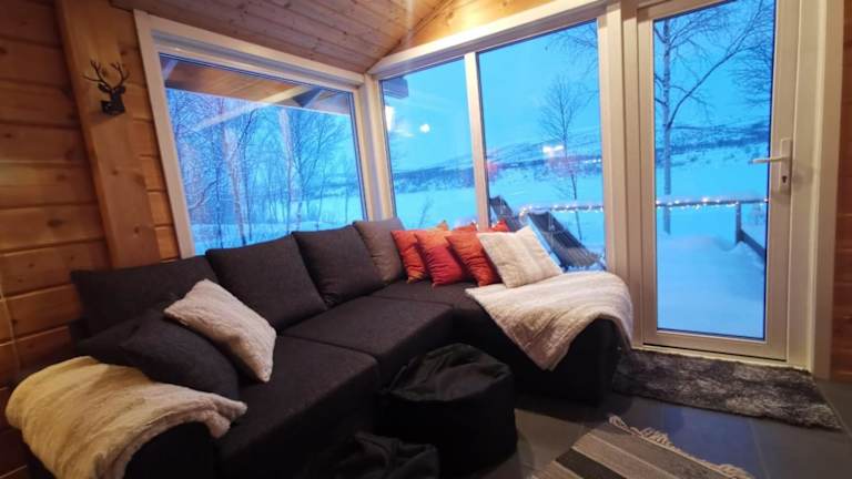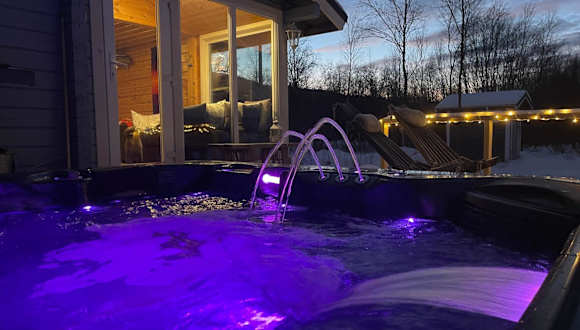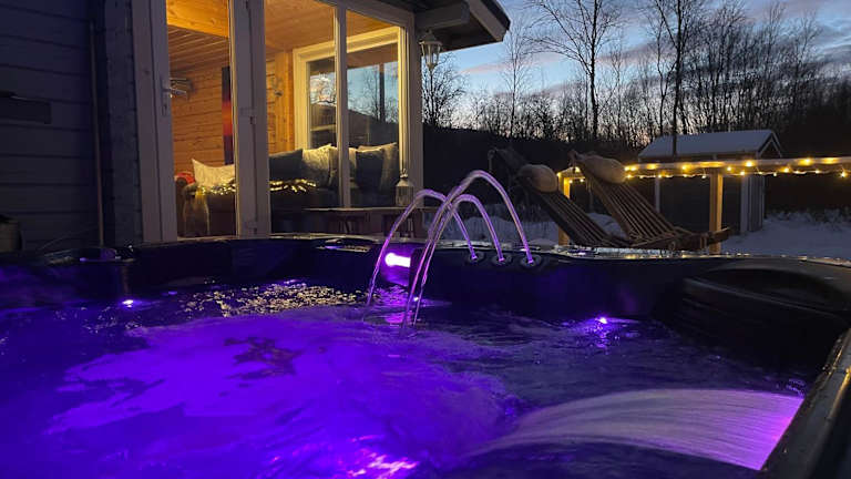 Aurora mökki porealtaalla Lapissa Tenojoen rannassa