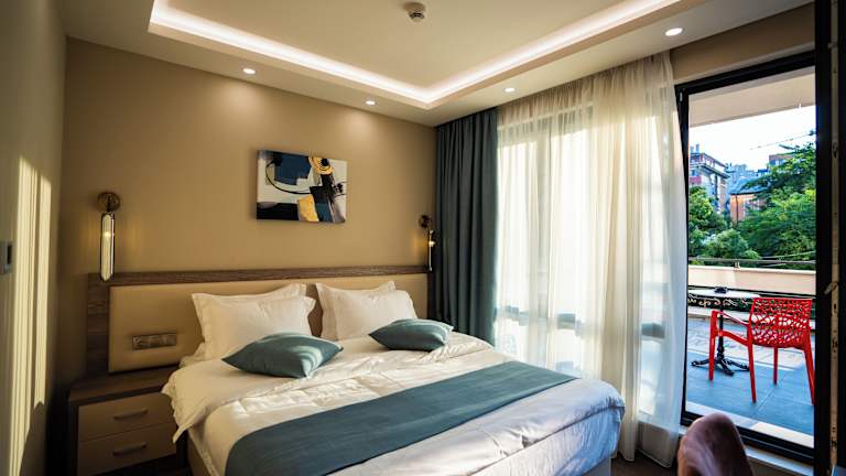 Alle Zimmer in der Unterkunft Aurora Sofia sind mit einem Schreibtisch, einem Flachbild-TV, einem eigenen Badezimmer, Bettwäsche und Handtüchern ausgestattet. Ausgewählte Zimmer verfügen zusätzlich über eine Küche mit einem Kühlschrank. Die Gästezimmer sind ebenfalls mit einem Safe ausgestattet.