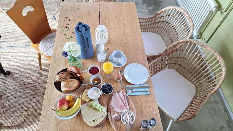 Frühstück kann im Zimmer serviert werden. Es besteht auch die Möglichkeit, individuelle Wünsche zu äußern, und Grillmöglichkeiten sind verfügbar.