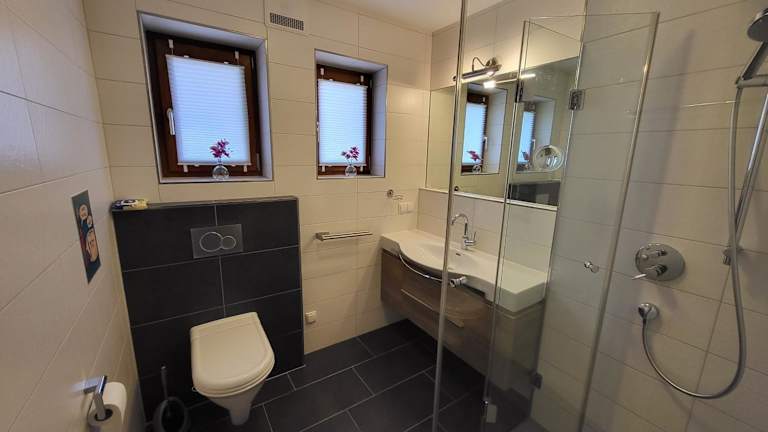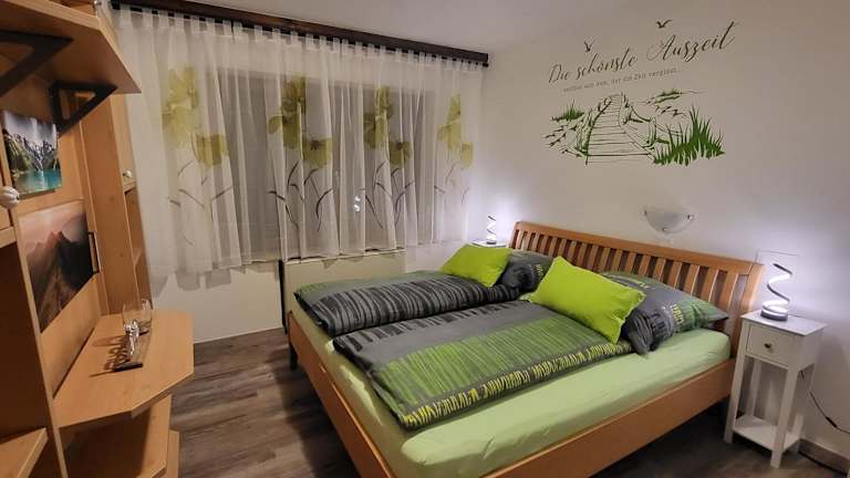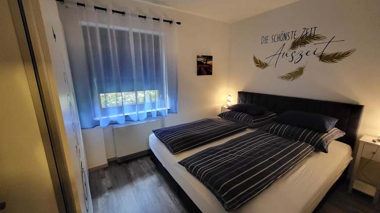Die Ferienwohnung bietet Platz in zwei Schlafzimmern, einem Wohnzimmer und ist mit einem Flachbild-TV ausgestattet. Eine gut ausgebaute Küche mit Kühlschrank und Geschirrspüler ist ebenfalls vorhanden. Das Badezimmer ist mit einer Dusche ausgestattet. Handtücher und Bettwäsche werden zur Verfügung gestellt.