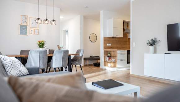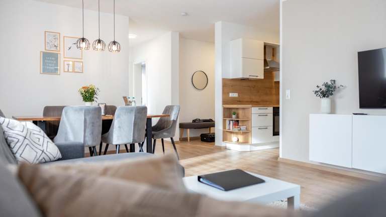 Das Auszeit im Feriendomizil bietet eine komfortable Ferienwohnung mit großzügigen Annehmlichkeiten einschließlich Grillmöglichkeiten und einem schönen Blick auf den Garten.