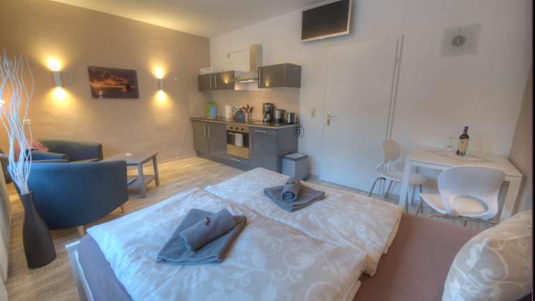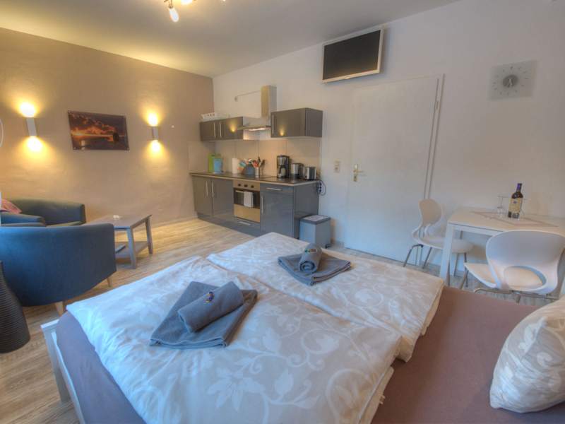 Die Ferienwohnung bietet kostenfreies WLAN, einen Satelliten-Flachbild-TV sowie eine voll ausgestattete Küche mit Kühlschrank und Ofen. Zur Ausstattung gehören weiterhin Handtücher und Bettwäsche.