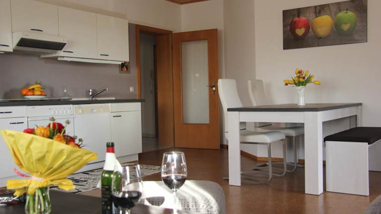 Das Restaurant der Auszeit-Wohnungen bietet eine Auswahl an italienischer und deutscher Küche. Es besteht die Möglichkeit, Essen in die Unterkunft liefern zu lassen. Ein Café ist ebenfalls vor Ort. Die Unterkünfte verfügen über eine voll ausgestattete Küche mit Kühlschrank und weiteren Kochgeräten.