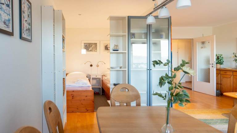 Die Unterkunft Auszeit bietet Übernachtungsmöglichkeiten in einer Ferienwohnung im 4. OG. Die Ferienwohnung ist mit kostenlosem WLAN ausgestattet und verfügt über einen Balkon mit Meerblick. Für den Aufenthalt gibt es spezielle Voraussetzungen, wie einen Mindestalter für den Check-in und das Verbot von Haustieren und Feierlichkeiten.