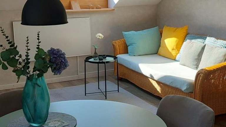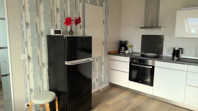 Die Ferienwohnung verfügt über ein Schlafzimmer, ein Wohnzimmer, einen Flachbild-TV sowie eine gut ausgestattete Küchenzeile mit Kühlschrank und Geschirrspüler. Des Weiteren sind 1 Badezimmer mit Dusche sowie Handtücher und Bettwäsche vorhanden.