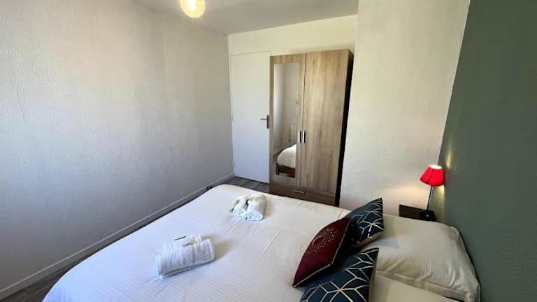 Das Apartment bietet 2 Schlafzimmer, ein geräumiges Wohnzimmer und eine voll ausgestattete Küche mit Kühlschrank und Kaffeemaschine. Das Badezimmer verfügt über eine Dusche und kostenlose Pflegeprodukte. Handtücher und Bettwäsche werden gestellt, um Ihren Aufenthalt so angenehm wie möglich zu gestalten. Kostenloses WLAN und ein Flachbild-TV sorgen für Unterhaltung und Komfort.