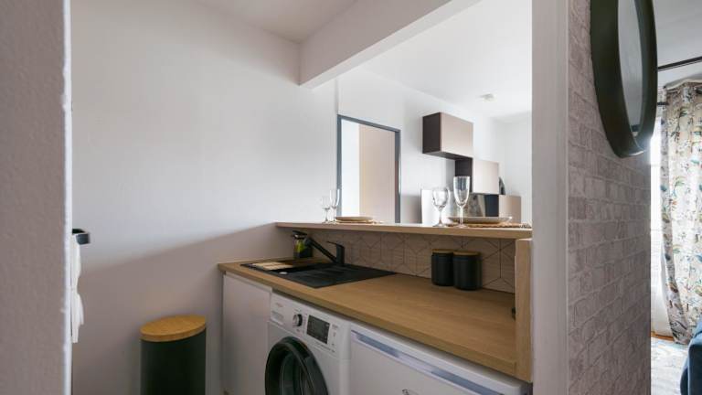Die Ferienwohnung umfasst ein Schlafzimmer, ein Wohnzimmer und eine voll ausgestattete Küche mit Kühlschrank und Wasserkocher. Ein Badezimmer mit Dusche und Haartrockner ist ebenfalls vorhanden. Handtücher und Bettwäsche werden gestellt.