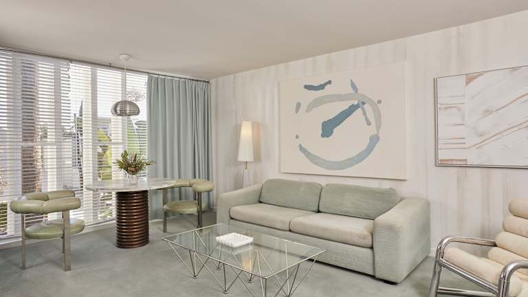Im eleganten Restaurant Viviane, das sich am Bumerang-förmigen Pool des Hotels befindet, können Sie köstliche kalifornische Interpretationen der europäischen und amerikanischen Küche genießen. Das Restaurant ist mit Originalmöbeln aus den 1950er und 1960er Jahren eingerichtet und bietet sowohl Innen- als auch Außenbereiche zum Speisen. Die Weinkarte ist auf die Speisekarte abgestimmt und bietet eine Auswahl an auserlesenen Boutiqueweinen. Genießen Sie auch saisonale Cocktails, die von den 1950er Jahren inspiriert sind.