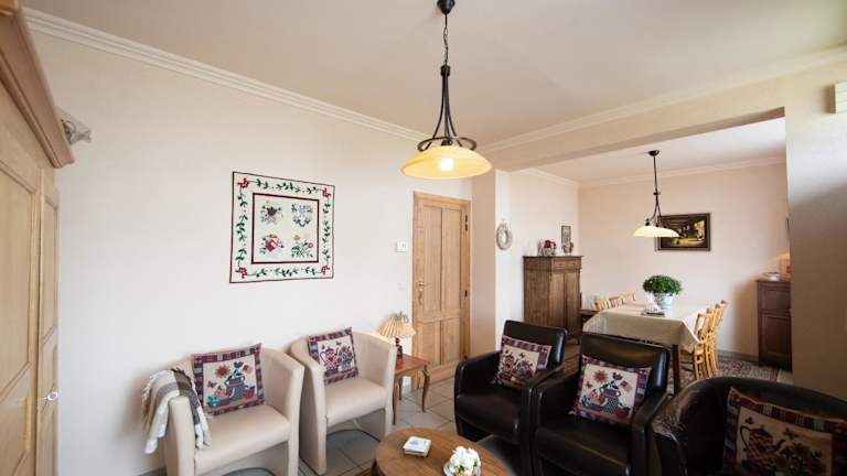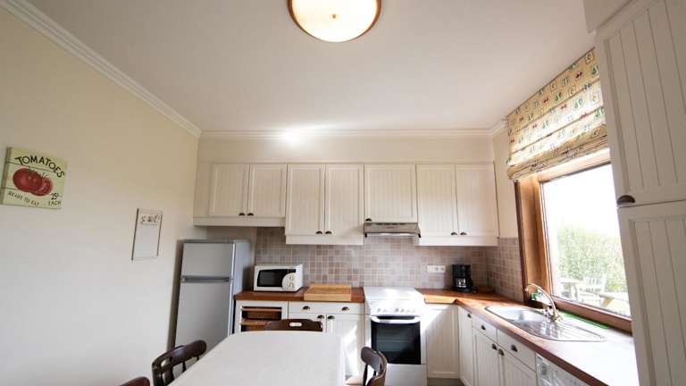 Das Ferienhaus bietet Platz in drei Schlafzimmern und einem Wohnzimmer mit einem Flachbild-TV. Es gibt ein Badezimmer mit Dusche sowie Handtücher und Bettwäsche, die zur Verfügung gestellt werden. Das Haus verfügt zusätzlich über eine Veranda/Patio.