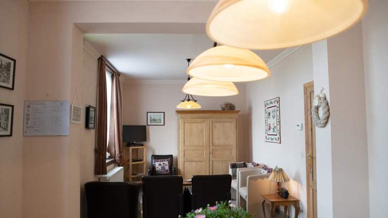 Für die Verpflegung ist eine gut ausgestattete Küche vorhanden, die einen Kühlschrank und einen Geschirrspüler umfasst. Zudem gibt es Möglichkeiten zur Essenslieferung in die Unterkunft.