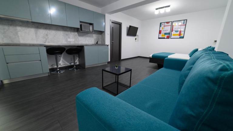 Das Aviator Apartament - Business Class Confort - Luxury in Deva bietet seinen Gästen einen komfortablen und luxuriösen Aufenthalt. Mit kostenfreien Privatparkplätzen, einer 24-Stunden-Rezeption und kostenlosem WLAN ist dieses Apartment ideal für Reisende, die einen erholsamen Aufenthalt in Deva suchen. Die Lage des Apartments ermöglicht es den Gästen, die Sehenswürdigkeiten der Umgebung wie das Schloss Corvin, den AquaPark Arsenal und den Gurasada Park zu erkunden. Das Apartment selbst verfügt über klimatisierte Räume, ein Schlafzimmer, einen Flachbild-Kabel-TV, einen Essbereich, eine voll ausgestattete Küche und ein gemütliches Wohnzimmer. Das Kloster Prislop ist ebenfalls in der Nähe.