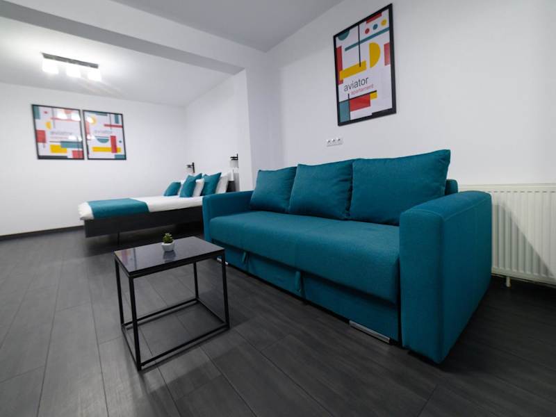 Das Aviator Apartament - Business Class Confort - Luxury bietet ein komfortables und stilvolles Apartment mit einer Vielzahl von Annehmlichkeiten. Das klimatisierte Apartment verfügt über ein gemütliches Schlafzimmer, in dem die Gäste sich ausruhen können. Der Flachbild-Kabel-TV sorgt für Unterhaltung und der Essbereich bietet Platz für gemeinsame Mahlzeiten. Die voll ausgestattete Küche mit Kühlschrank ermöglicht es den Gästen, ihre eigenen Mahlzeiten zuzubereiten. Das geräumige Wohnzimmer lädt zum Entspannen ein. Kostenloses WLAN ist im gesamten Apartment verfügbar.