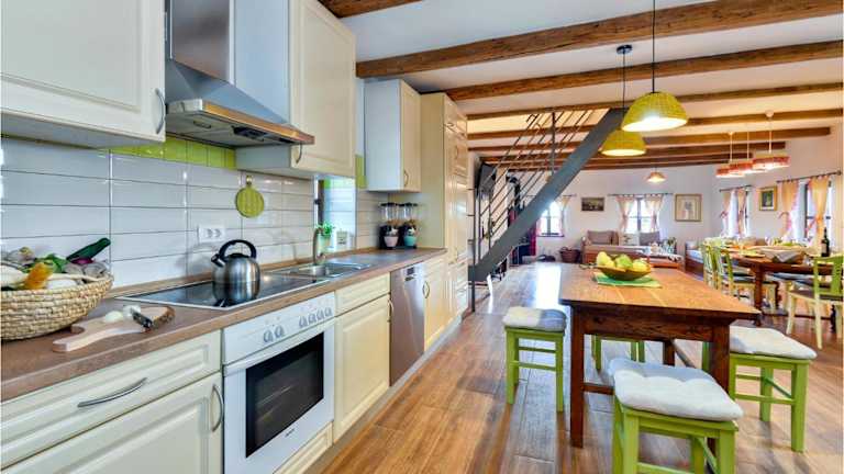 In der voll ausgestatteten Küche stehen ein Kühlschrank und eine Kaffeemaschine zur Verfügung. Details zur Verpflegung sind in der Beschreibung nicht vorhanden.