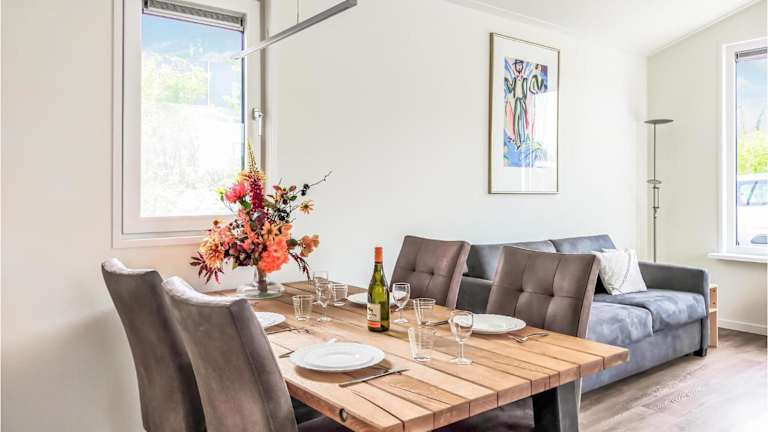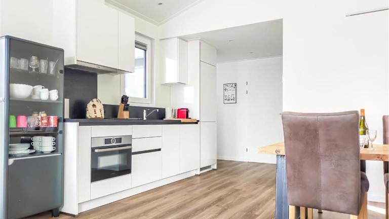 Das Ferienhaus verfügt über ein Schlafzimmer, ein Wohnzimmer mit Kabel-TV sowie eine voll ausgestattete Küche mit Kühlschrank und Geschirrspüler. Das Badezimmer ist mit einer Dusche ausgestattet. Die Unterkunft bietet zudem Gartenmöbel und Heizungsanlagen.