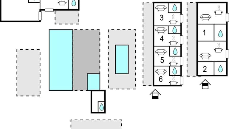 Das Ferienhaus umfasst 7 Schlafzimmer und ein Wohnzimmer. Die voll ausgestattete Küche ist mit einem Kühlschrank und einer Kaffeemaschine ausgestattet. In den 7 Badezimmern befinden sich Duschen und Whirlpools, zudem ist die Unterkunft klimatisiert.