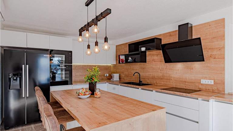 Das Ferienhaus umfasst 4 Schlafzimmer, eine komplett ausgestattete Küche mit Kühlschrank und Geschirrspüler sowie 3 Badezimmer mit Dusche, Haartrockner und Waschmaschine. Zur Ausstattung gehört auch ein TV. Es stehen Gartenmöbel zur Verfügung, die Nutzung des Außenpools ist möglich.